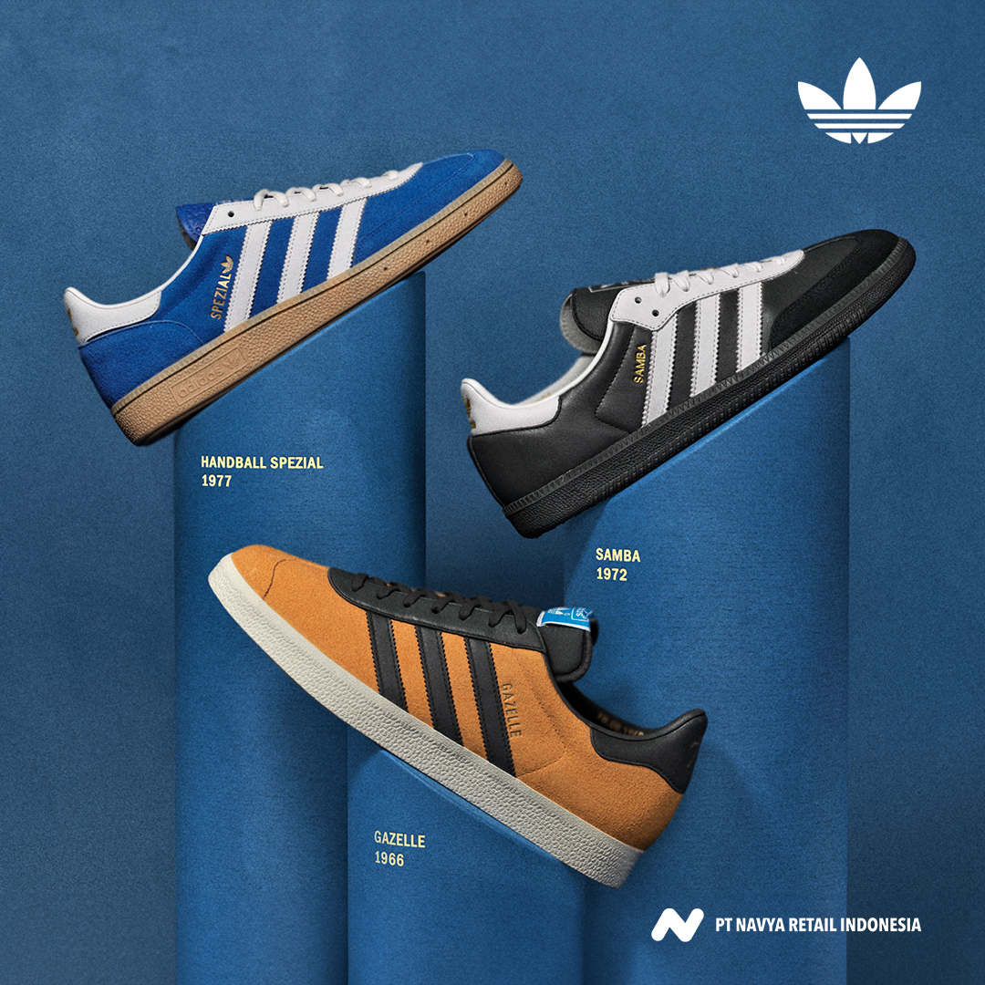 Ini dia trio klasik dari adidas Originals yang selalu menarik dan nggak pernah out of date: Samba, Gazelle, dan Handball Spezial.