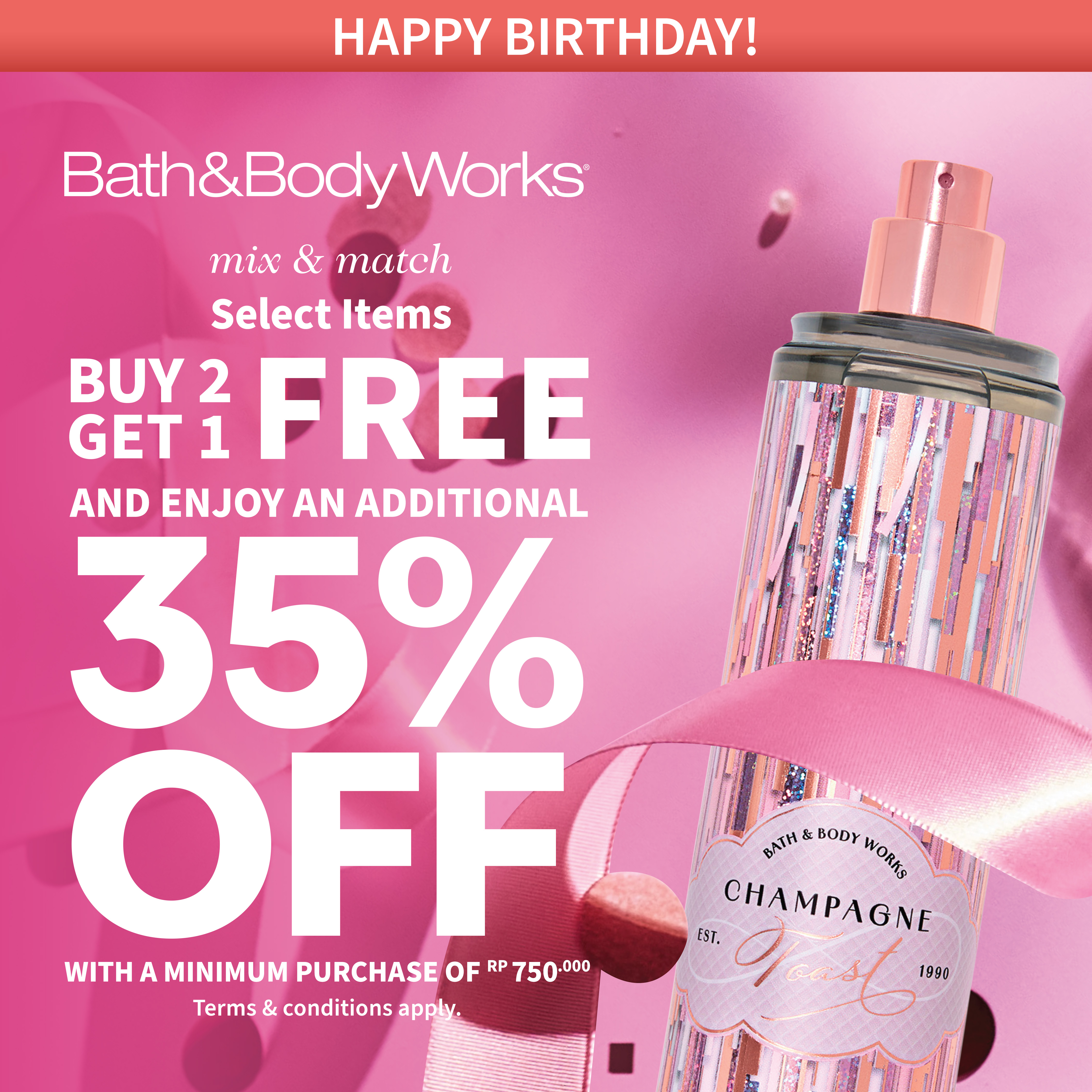 Buy 2 Get 1 untuk produk-produk terpilih dari Bath & Body Works!