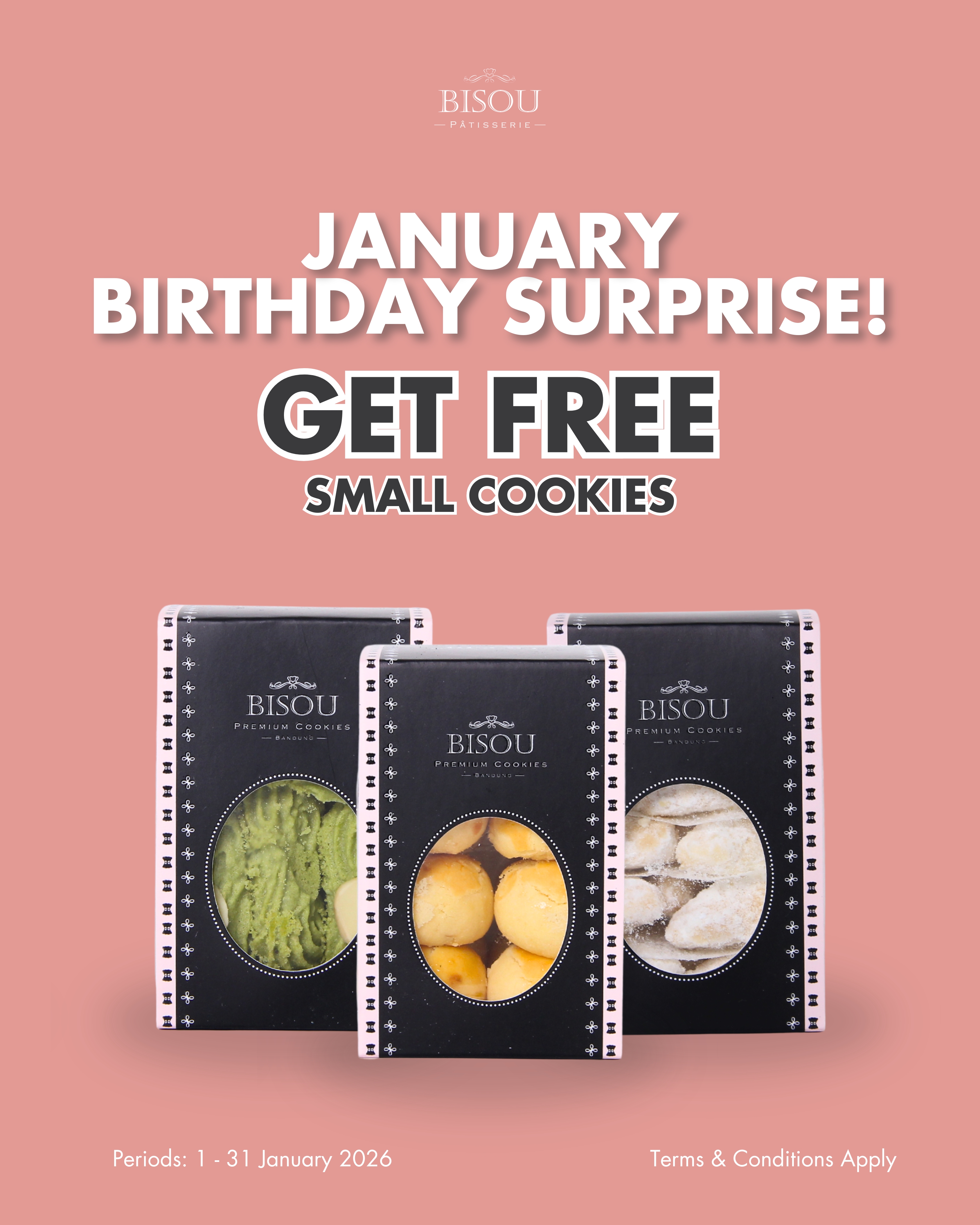Bivers yang berulang tahun di bulan Januari, waktunya rayakan momen spesialmu dengan kejutan manis dari Bisou Patisserie!