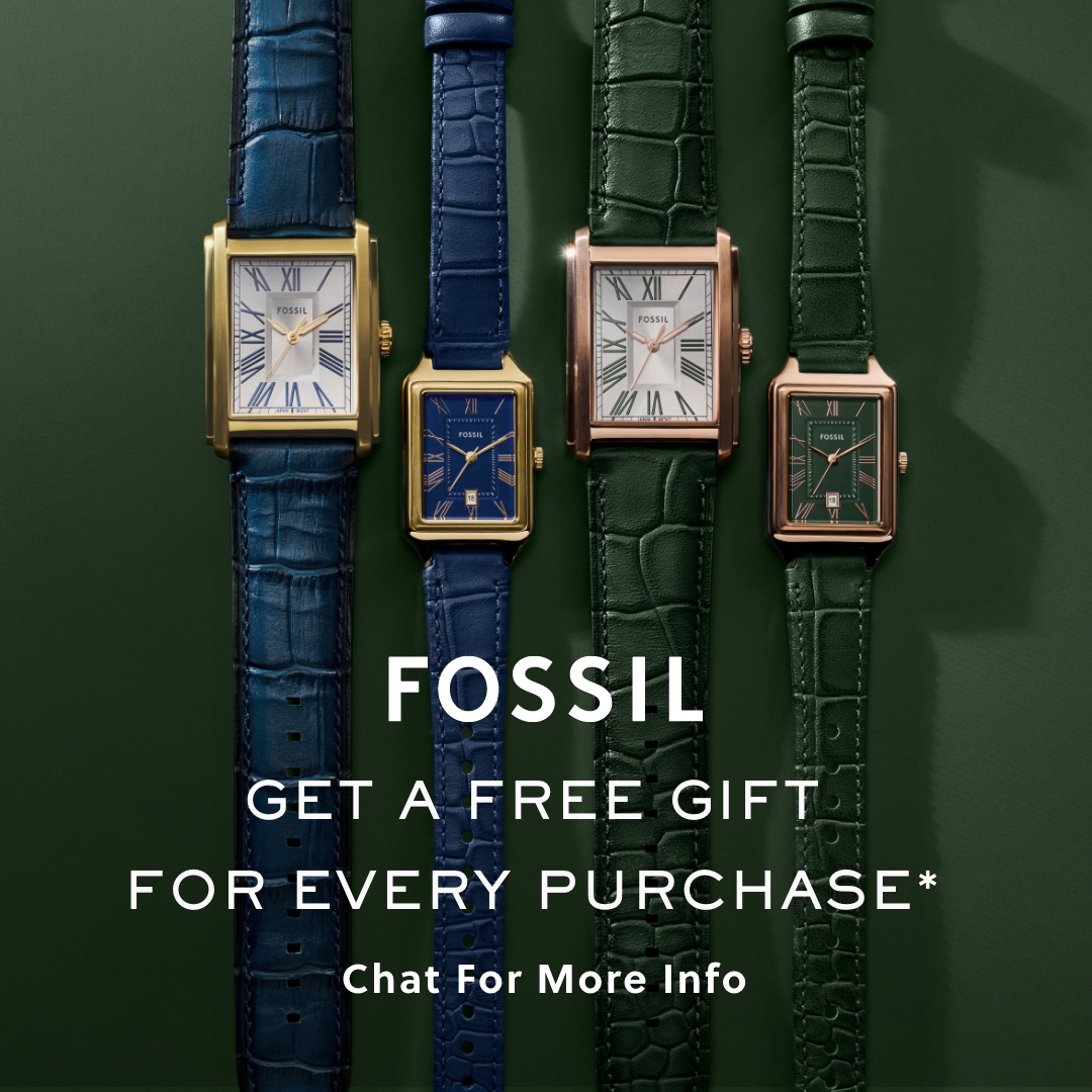 Shop your favorite Fossil products and choose your own FREE gift! Time's ticking, get yours now! Visit Fossil (Mall Name)!