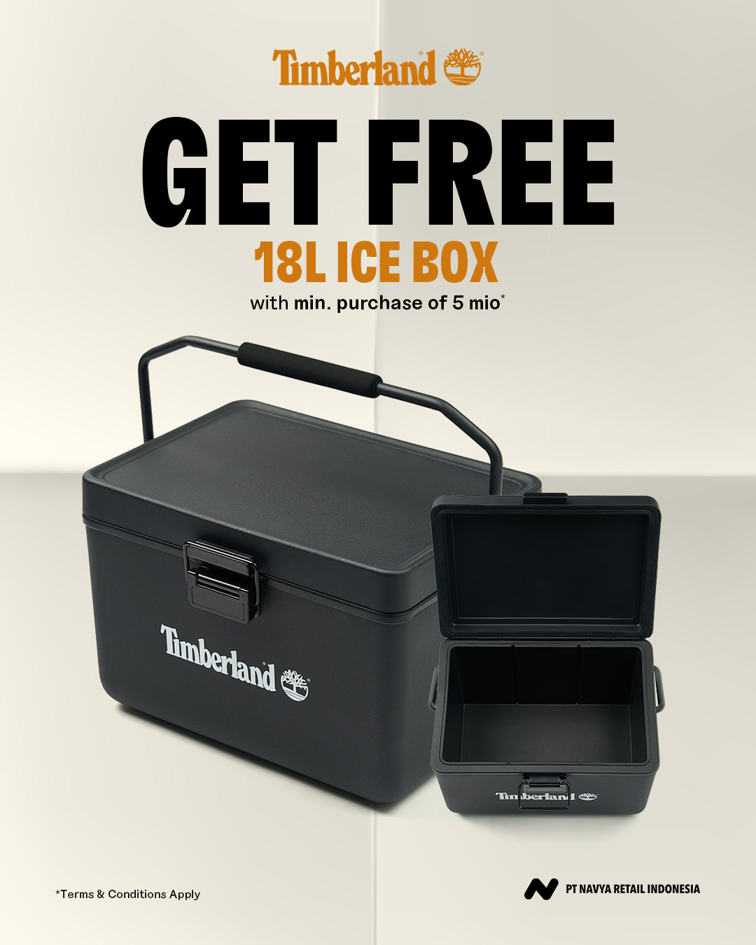 Buat kamu pecinta outdoor, dapatkan Timberland Ice Box eksklusif untuk setiap pembelian minimum Rp5.000.000 (harga normal) di semua kategori produk Timberland—mulai dari sepatu, apparel, hingga aksesori!