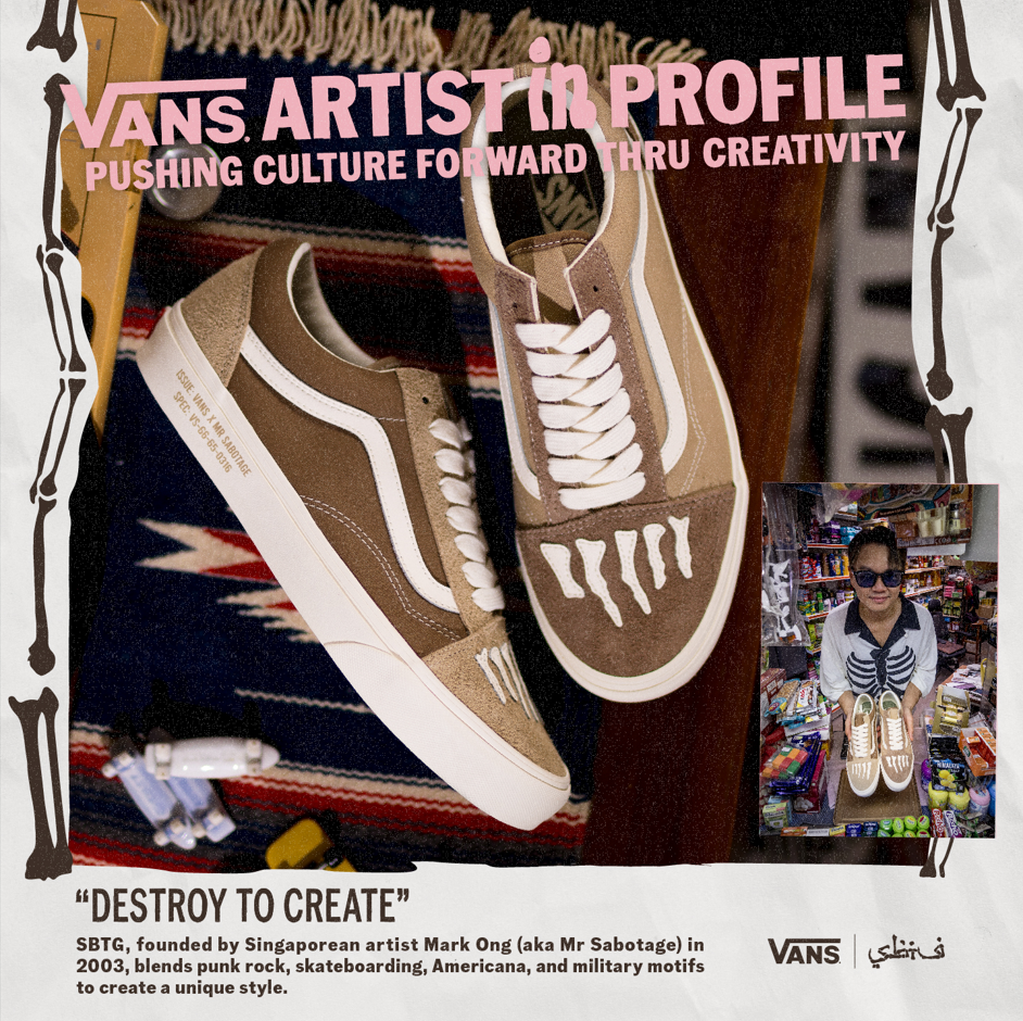 Koleksi Vans bersama Mr Sabotage menghadirkan silhouette Old Skool dengan motif tulang di bagian atas sepatu yang memancarkan nuansa punk rock.